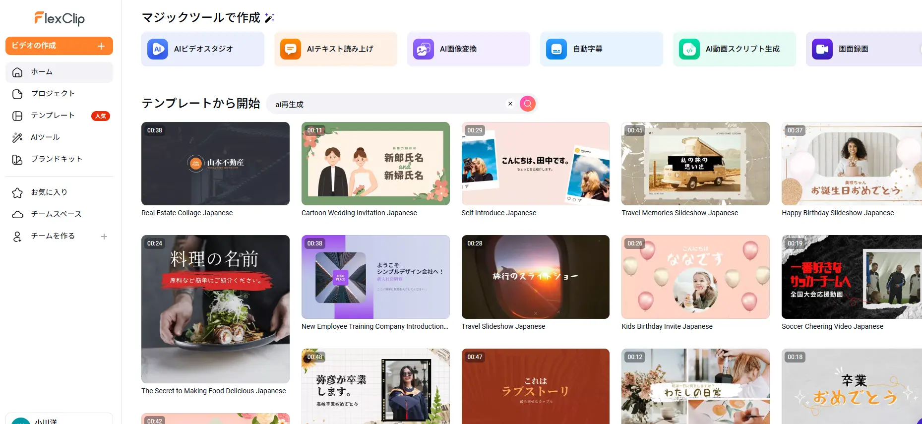 FlexClipのテンプレートページで自分のイメージにあったテンプレートを選びます。