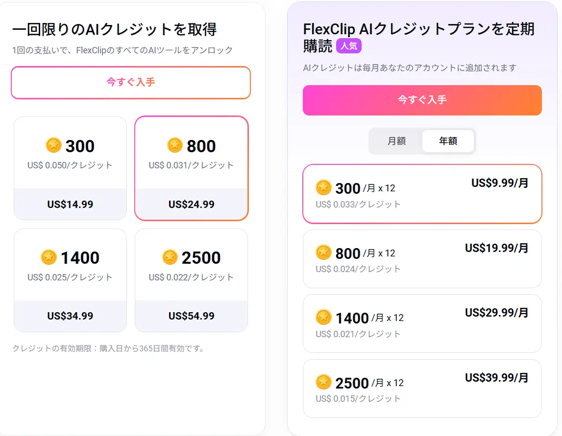AIによる動画生成や高度な編集を頻繁に使いたい場合は、このAIコインを追加で購入することで、必要な分だけAI機能を利用できます。